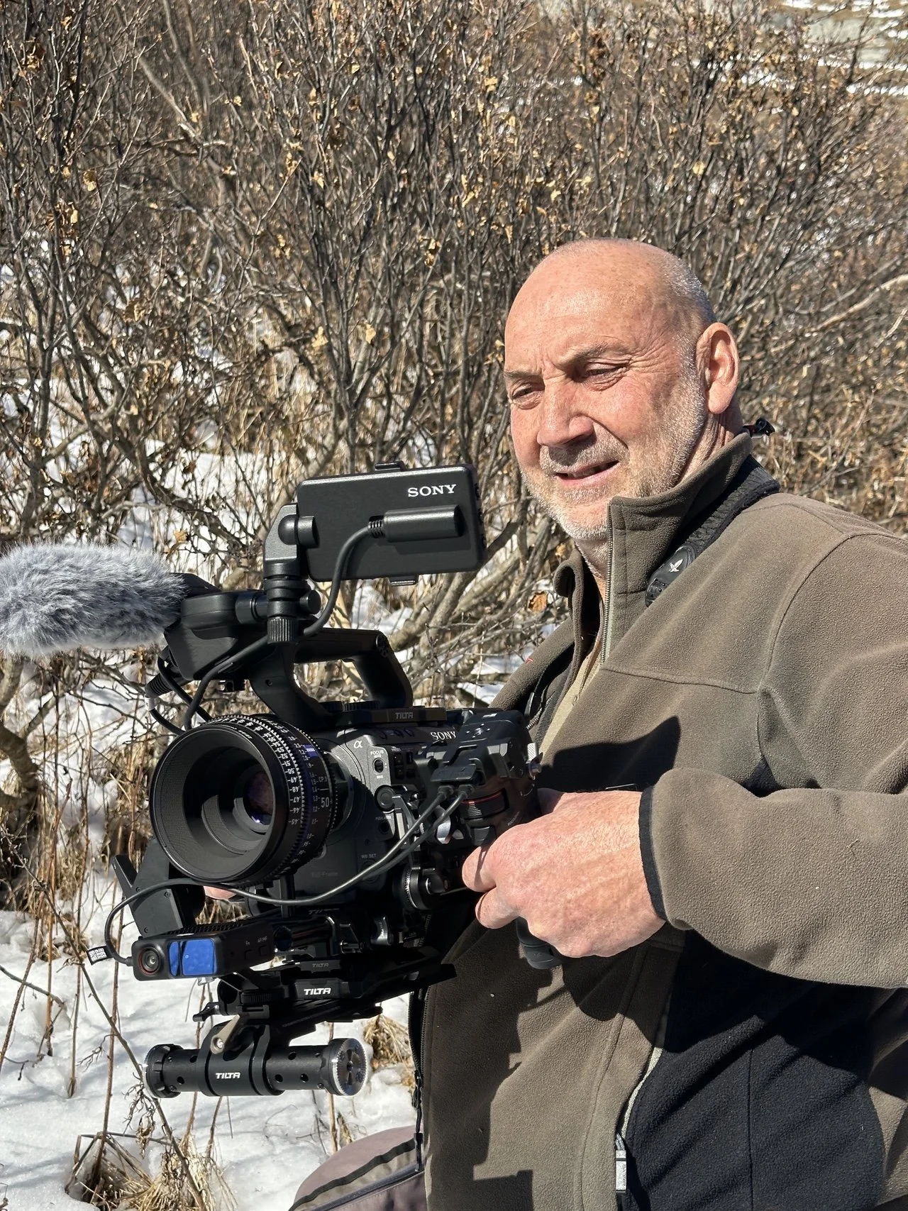 Renato Roganti, nach einer Wanderung abseits der Pfade mit schwerer Kino-Ausrüstung